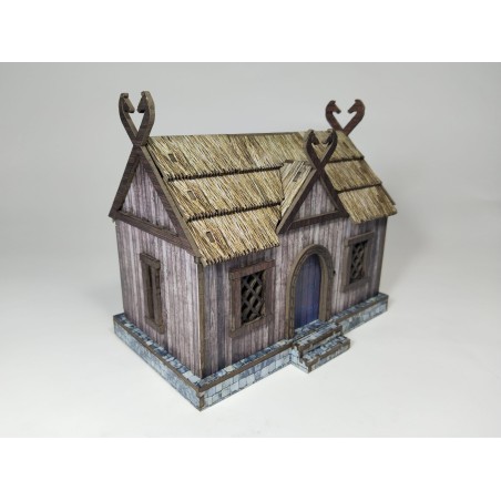 Esta casa vikinga es la pieza central perfecta para tus wargames históricos. Diseñada meticulosamente para una escala de 28mm, es ideal para representar desde la morada de un guerrero hasta un edificio clave en una aldea bulliciosa. Su robusta estructura y su increíble nivel de detalle la convierten en un elemento de escenografía que no solo mejora la jugabilidad, sino que también captura la esencia de la arquitectura nórdica.