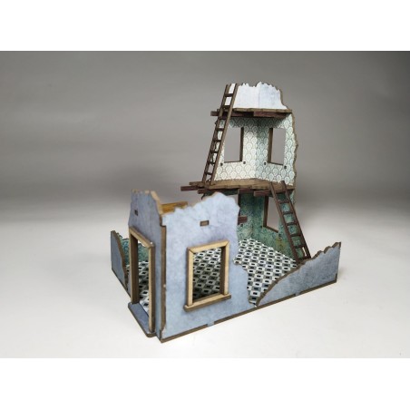 Este edificio en ruinas de tres pisos es una pieza imprescindible para cualquier mesa de wargames ambientada en la Europa de la Segunda Guerra Mundial. Con un diseño detallado y realista, representa los estratos del combate urbano, proporcionando cobertura y elevación estratégica para tus miniaturas.